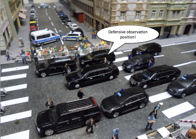 He is received by the German Chancellor Adolf SCHUMAKER when he gets off the train. They have both just climbed into the limousine of the US President that SuperZil has brought...
